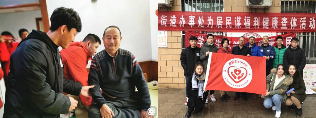 “健康有Young”大学生志愿服务团队成立以来,志愿者们多次在西海岸新区急救中心、“120国家急救日”志愿者招募仪式等场所参加相关医护技能培训和应急救护操作演练。他们一直努力践行着“奉献、有爱、互助、进步”的志愿者精神,2020年初,伴着青岛的第一场雪,志愿者们在青岛市最有温度医者团队——西海岸新区红石崖街道社区卫生服务中心“红衣队”的带领下走进解家村失能、失智人员家中,为他们提供测血糖血压、心电图、保健养生指导、康复锻炼指导等服务,坚持用实际行动诠释新时代青年学生的责任与担当。