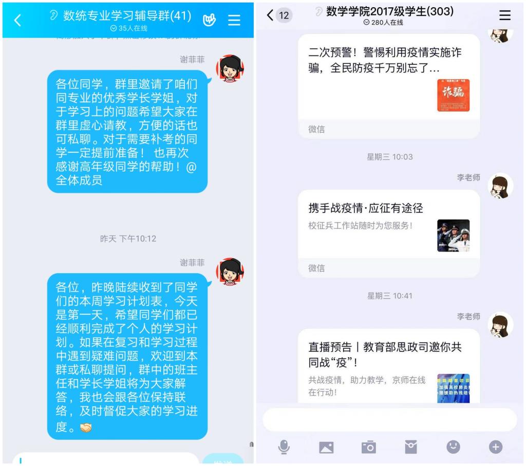 学生工作干部、班主任、研究生导师全员动员,在各大线上平台为学生假期的学习和生活保驾护航。