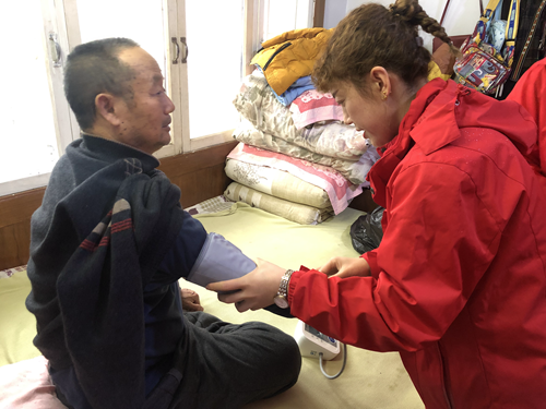 研究生李祥宾参与了给老人查体过程,他表示,“现在还在学习健康知识的过程中,看到了卫生服务队贴心的服务,我们也想出一份力。”