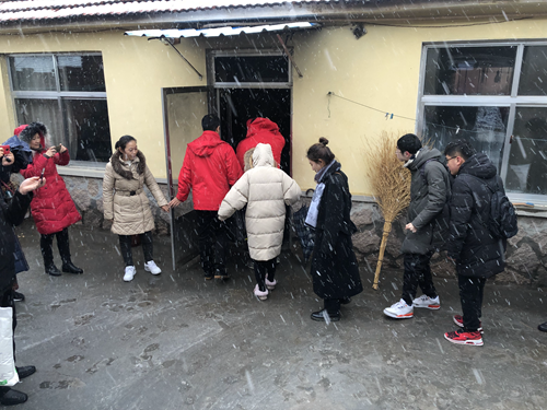 “健康有Young”大学生志愿者服务团队的9名本科生、研究生志愿者,在青岛市“最有温度医者团队”——西海岸新区红石崖街道社区卫生服务中心“红衣队”的带领下走进解家村失能、失智人员家中,给他们提供测血糖血压、心电图、保健养生指导、康复锻炼指导等服务,踏着初雪为村民送去了温暖。
