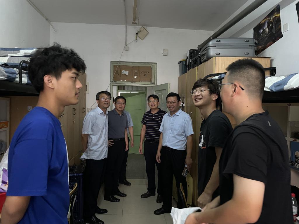 新生报到进展,并深入公寓看望报到新生,对新生予以关心问候。