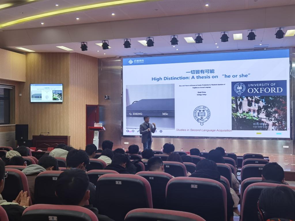 启动仪式结束后,启德星学社国际课程中心总经理兼启德考培产品总监郑庆利为同学们作“从高考失利到牛津录取:如何实现更有意义的留学”专题讲座。