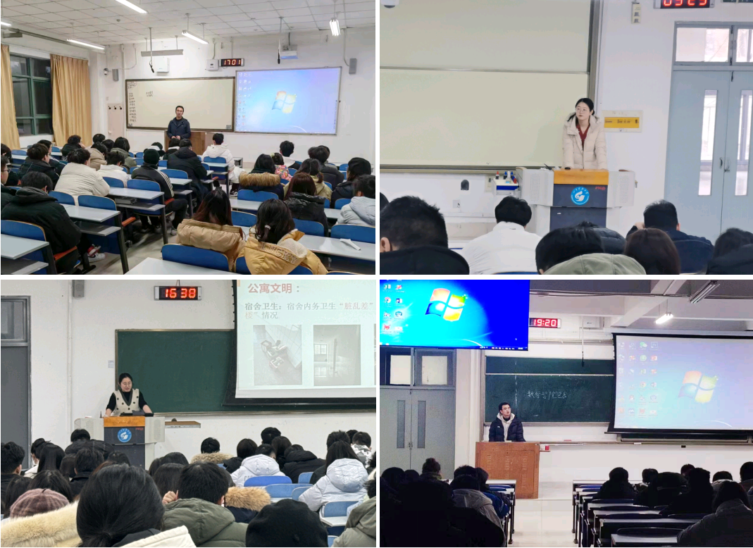 领导班子会、教职工大会、学生主题班会等,学习传达有关安全工作精神,强化师生安全防范意识。