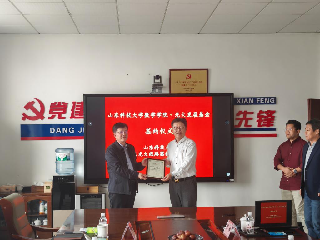 ·光大发展基金签约仪式在山东光大线路器材有限公司举行。山东科技大学党委常委、副校长徐龙飞,山东光大线路器材有限公司董事长兼总经理张辉及双方相关负责人参加了签约仪式。