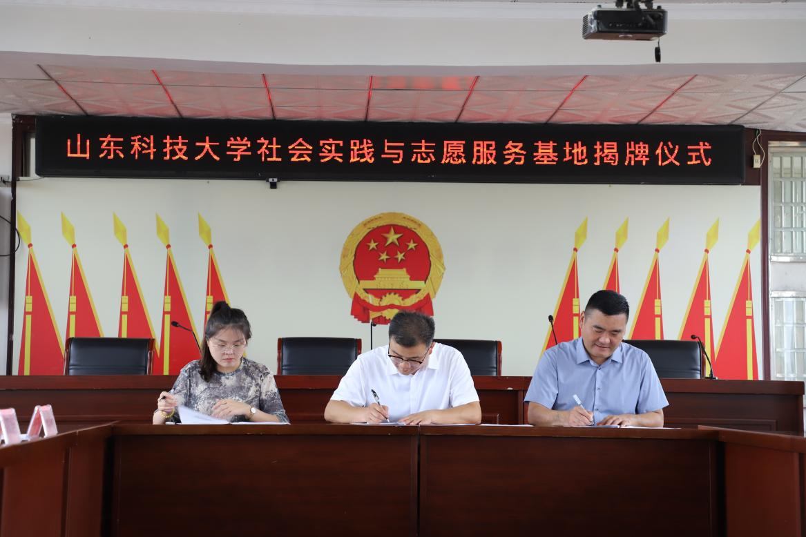 与共青团枣庄市峄城区委员会、峨山镇人民政府,枣庄市市中区永安镇人民政府、枣庄市市中区青年志愿者协会签订了《山东科技大学大学生社会实践与志愿服务基地共建协议书》,共同为大学生社会实践与志愿服务基地揭牌。(通讯员:诸葛祥玉)