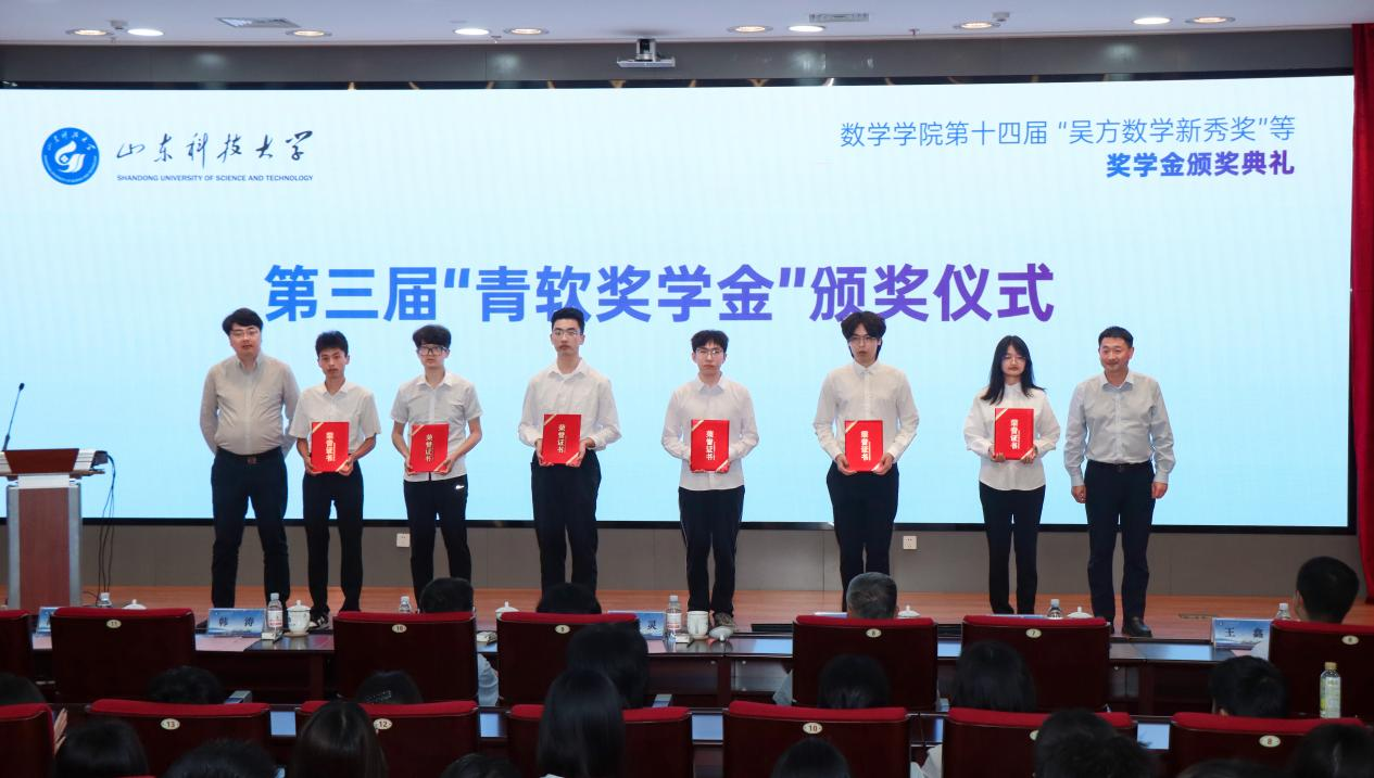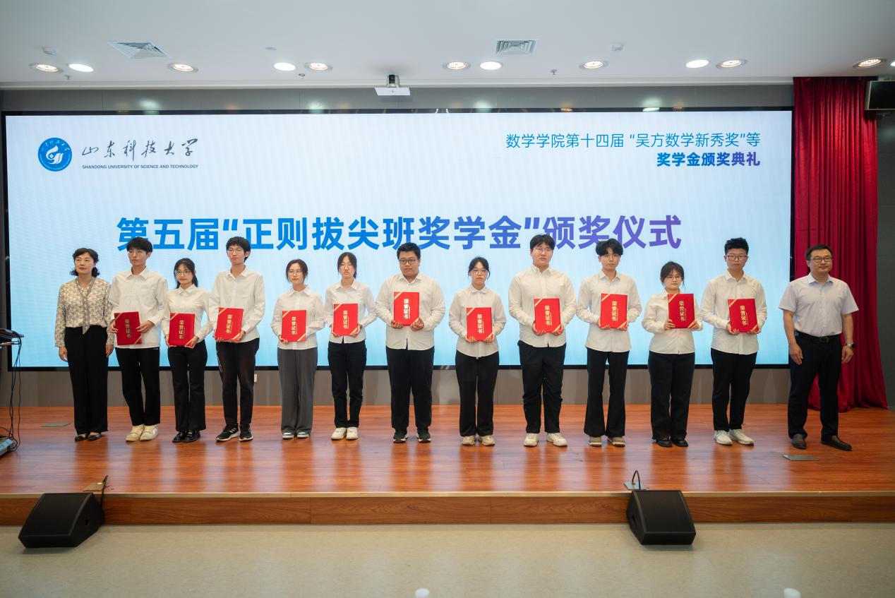 院长董焕河宣读了第十四届“吴方数学新秀奖”等奖学金表彰决定。与会领导为“吴方数学新秀奖”“青软奖学金”“正则拔尖班奖学金”获奖学生颁奖。“吴方数学新秀奖”一等奖获奖学生李天佑作代表发言。