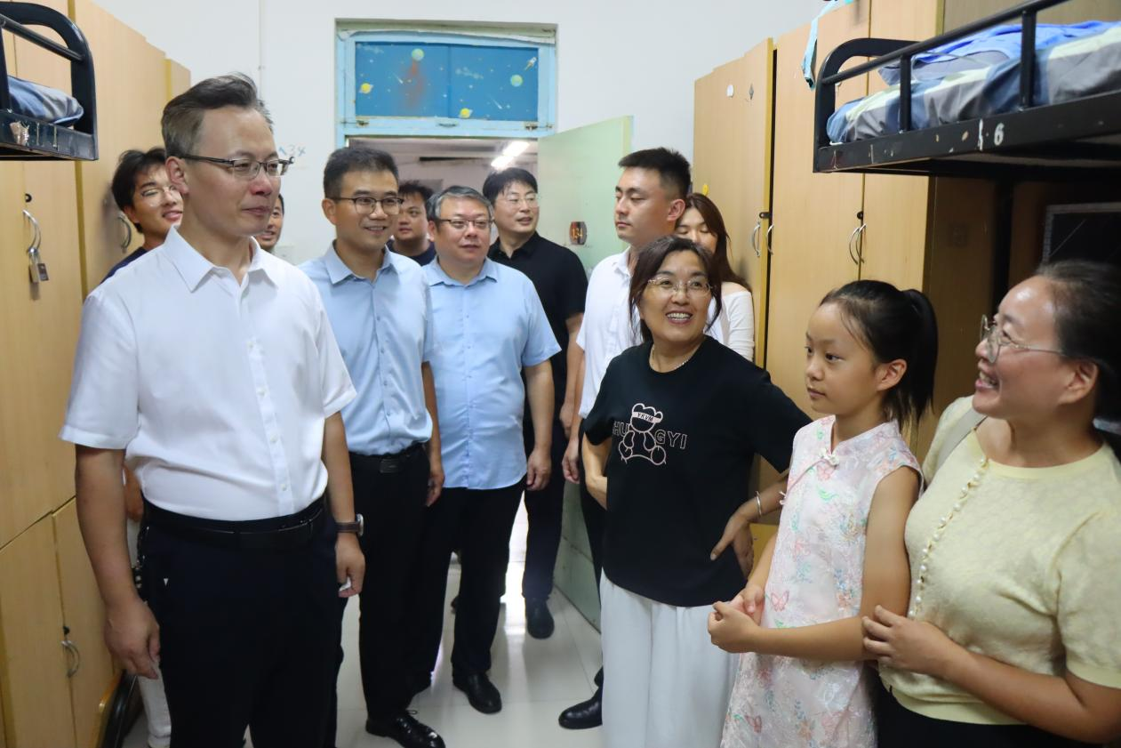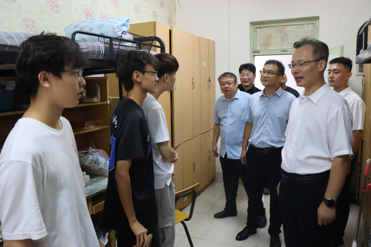 领导班子成员,到达迎新现场,细致检查人员、物资配备及应急措施的落实情况。深入学生公寓,全面检查新生宿舍的设施配备和卫生状况。期间,他们与新生亲切交流,详细了解新生的适应情况,并勉励同学们以饱满的精神面貌迎接崭新的校园生活。