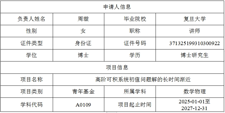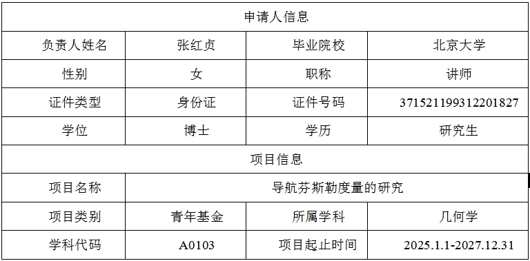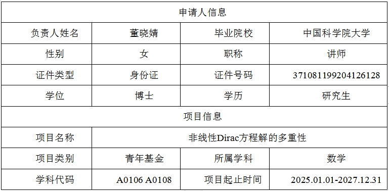 张红贞、董晓婧、周璇 老师满足申报要求、证明材料完备,符合山东省自然科学基金“直接给予”政策,相关信息公示如下:
