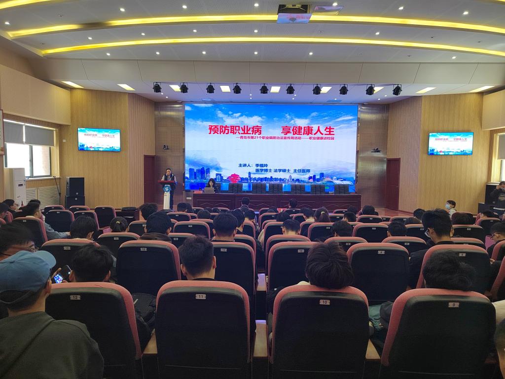 邀请青岛市疾控中心职业卫生所副所长兼职业病鉴定办主任季福玲在J9-144报告厅为我校师生带来一场精彩的“预防职业病,享健康人生”知识讲座。