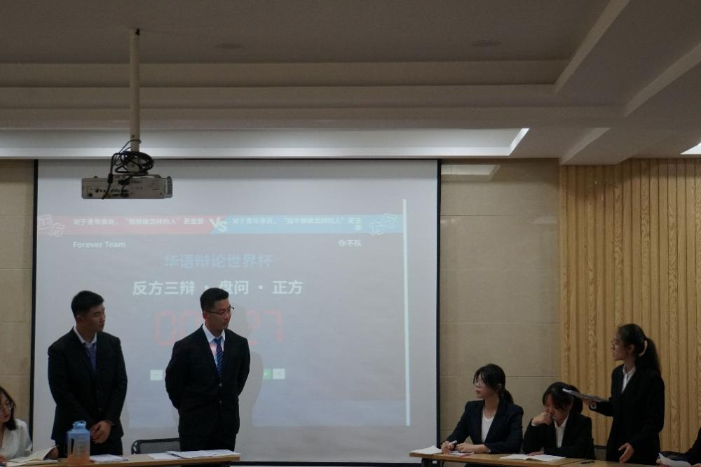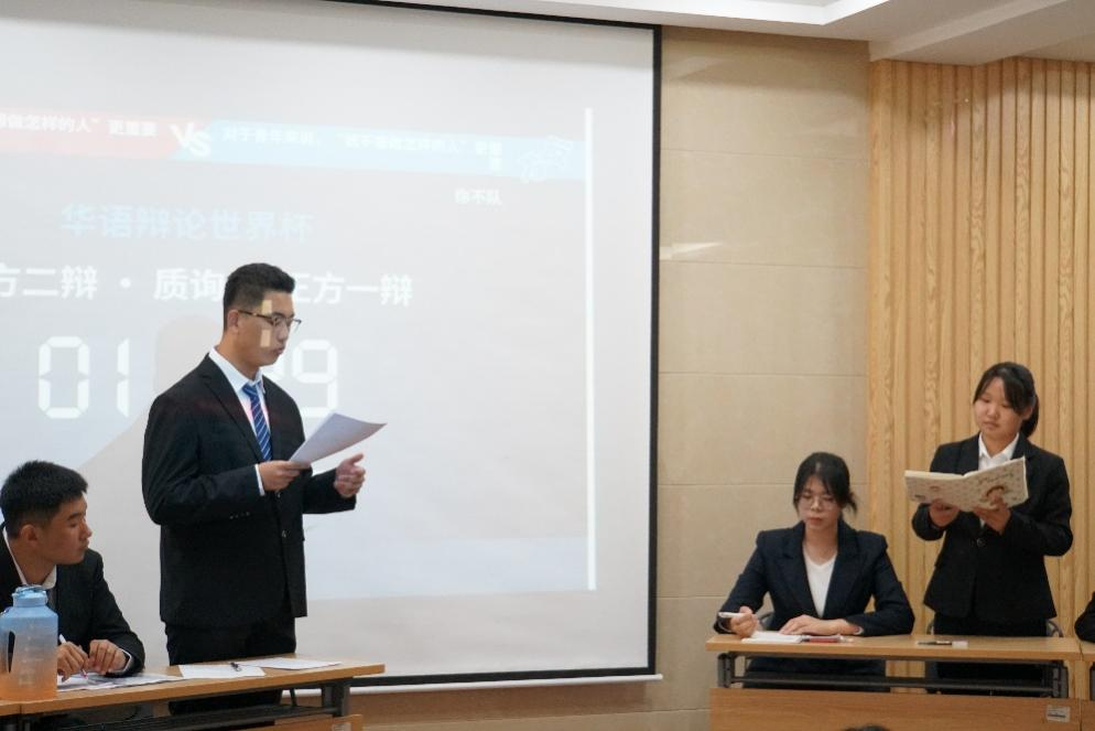 决赛队伍就“对于青年来说,‘我想做怎样的人/我不想做怎样的人’更重要”辩题展开了精彩的辩论角逐,双方选手唇枪舌战、尽显风采,现场观众不断发出阵阵掌声。