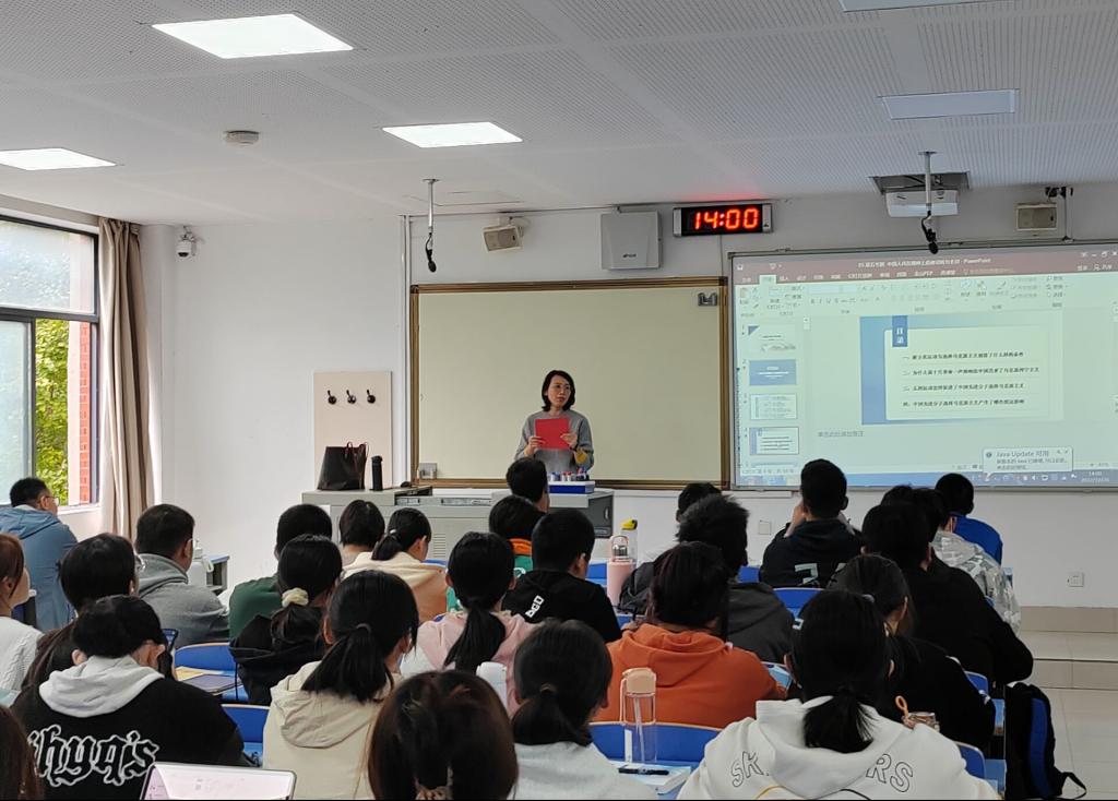 “要高举中国特色社会主义伟大旗帜,全面贯彻新时代中国特色社会主义思想,弘扬伟大建党精神,自信自强、守正创新,踔厉奋发、勇毅前行,为全面建设社会主义现代化国家、全面推进中华民族伟大复兴而团结奋斗”“作为新时代青年大学生,必须要增强忧患意识,坚持底线思维,做到居安思危、未雨绸缪,准备经受风高浪急甚至惊涛骇浪的重大考验。”...思政微课堂上,任课教师鼓励同学们要认真学习好、宣传好、贯彻好党的二十大精神,以身作则,学深悟透,学以致用,按照习近平总书记对青年的要求,提升技能、增长才干,不负祖国、不负人民。