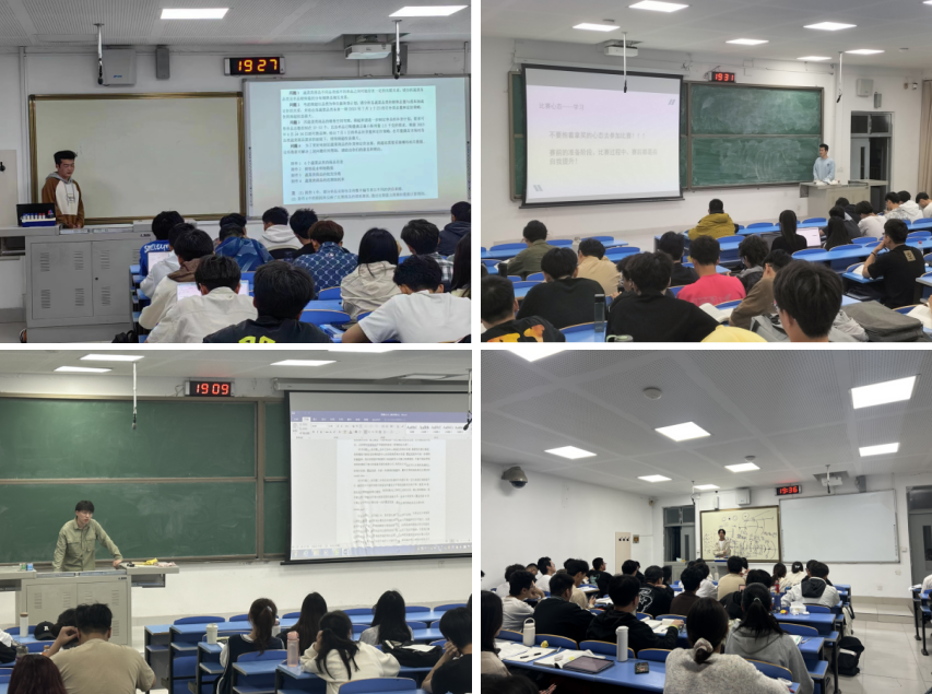 组织数学建模比赛国奖获得者及其团队走进晚自习教室向低年级同学分享自己的参赛历程和相关经验。