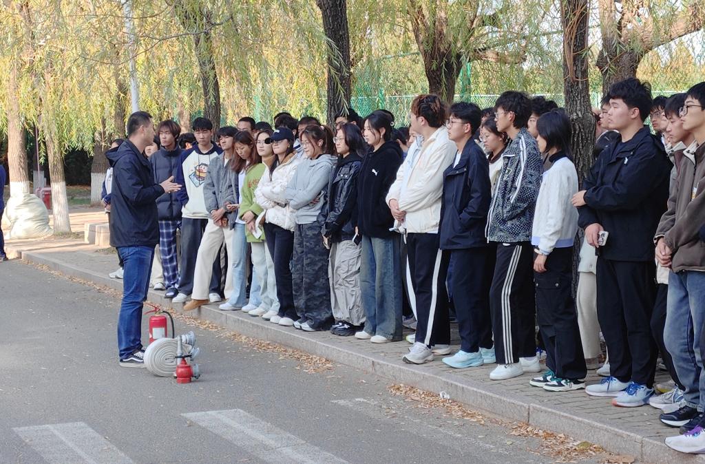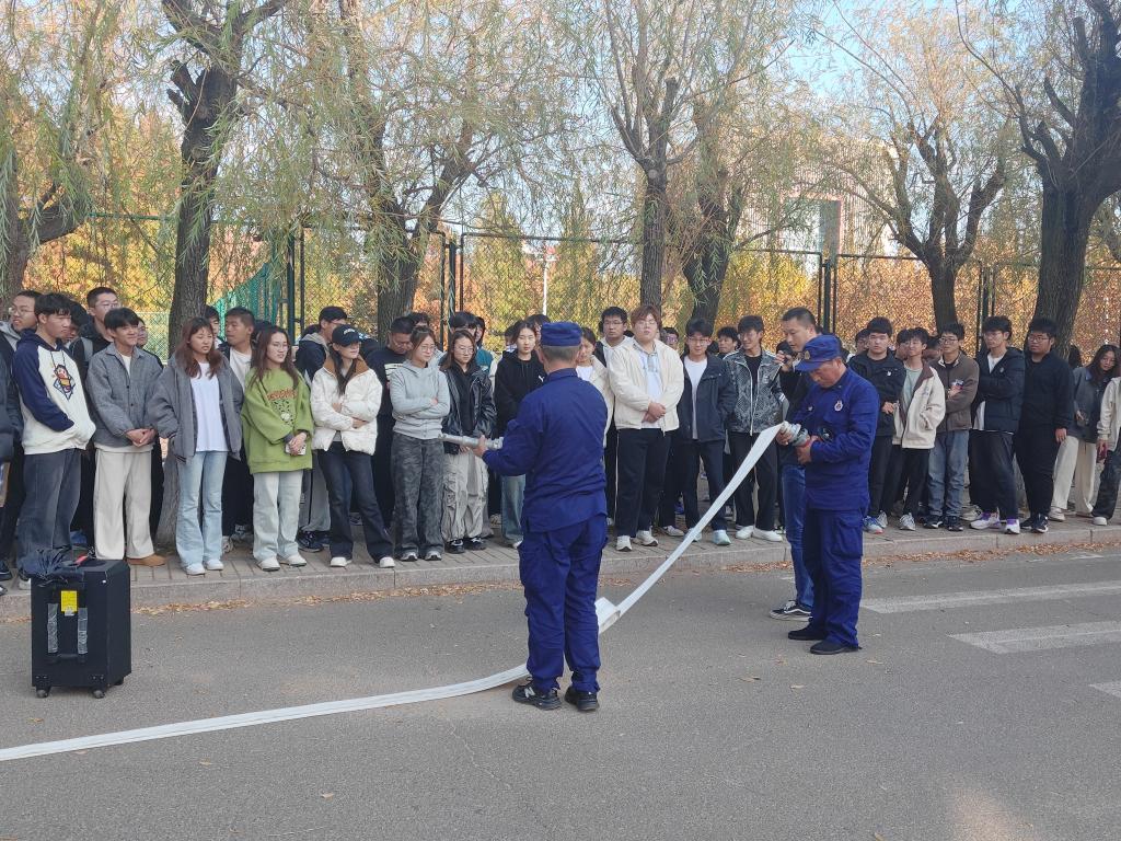 于C区学生公寓东侧道路组织了一场消防安全宣讲及演练活动,并邀请学校安全管理处消防科邵建华老师作为本次活动的宣讲嘉宾及指导专家。