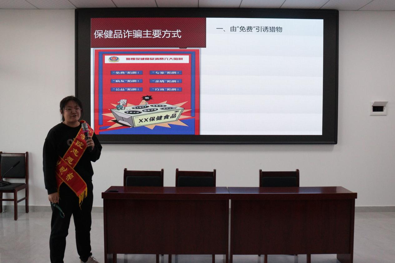 学生会权益部精心策划,广泛宣传,吸引社区内众多居民参加。宣讲现场,主持人王鹏皓携手潘越,孔令田,孟佳,侯文秀和闫文康五位宣讲人,围绕如何识别并提防电信诈骗、家用电器使用中容易忽略的安全问题以及如何科学养生进行了深入浅出地讲解,并通过实例分析,与现场观众交流互动,有效地帮助社区居民掌握了必要的防范技巧和健康知识。现场气氛热烈,反响积极。