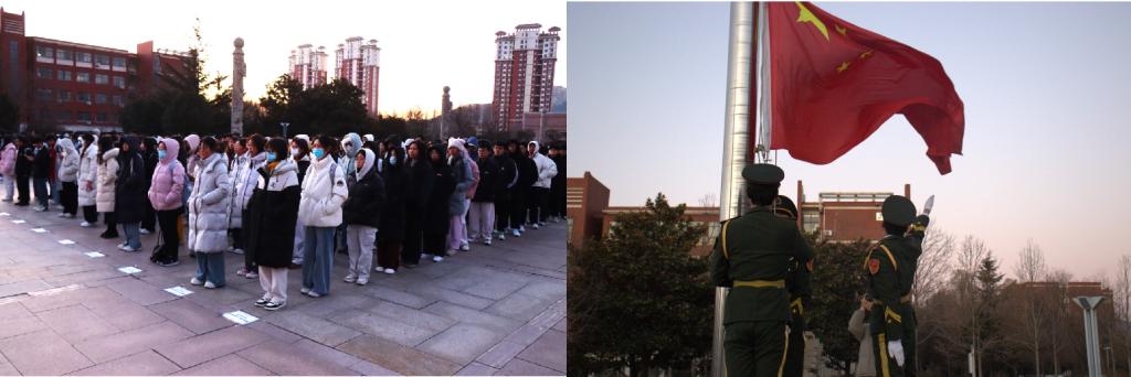 在晨曦微露中,2024级与2023级全体学生精神饱满地参加了新学期第一次升旗仪式。他们向着朝阳、向着国旗,迎接新学期的到来。