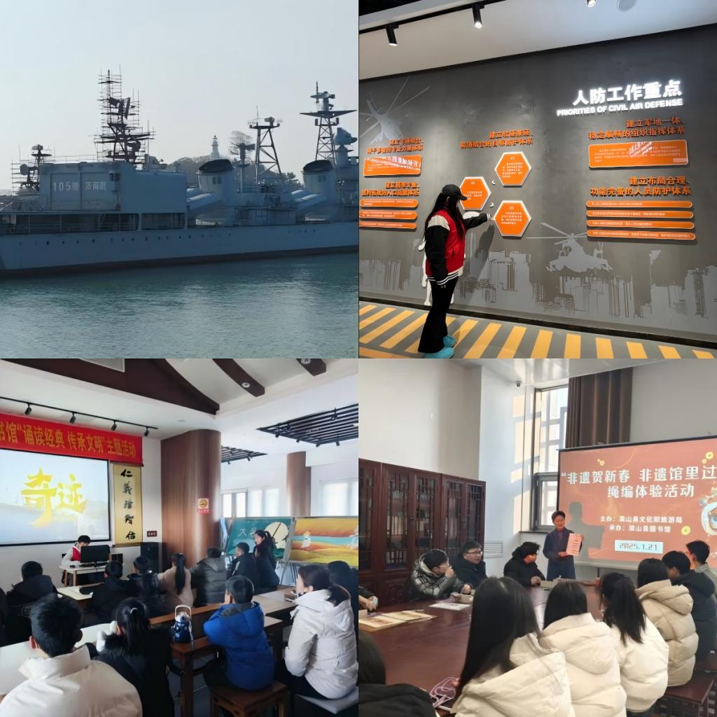 为筑牢理想信念,汇聚青春力量,多名同学开展厚植爱国情怀与坚定文化自信社会实践活动。霍义帅前往中国人民解放军海军博物馆,不忘建党初心,铭记历史,珍惜当下,奋辑未来;赵心悦走进德州市人民防空宣教馆,了解中国人防事业的发展脉络,感叹中国人防发展的伟大成就;陈沐馨走进阳谷县图书馆,为当地儿童播放并讲解传统经典电影,诵读经典,传承文明;王宁回到社区图书馆,学习传统手工艺绳结的制作,了解传统工艺的技巧,以匠心筑梦,传承传统文化。