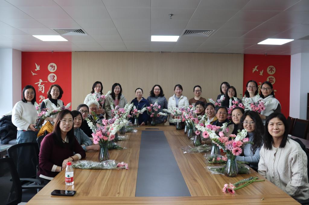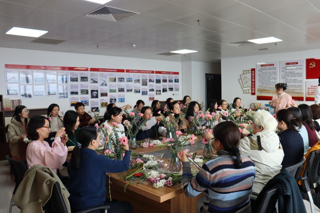 二十余名女教职工齐聚一堂,在花香与笑语中感受艺术之美,共度温馨节日。
