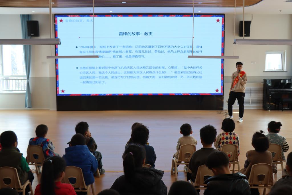 组织组织青年志愿者走进殷家河南区幼儿园,开展“童声话雷锋·薪火永相传”主题实践活动,通过代际互动实现精神传承。
