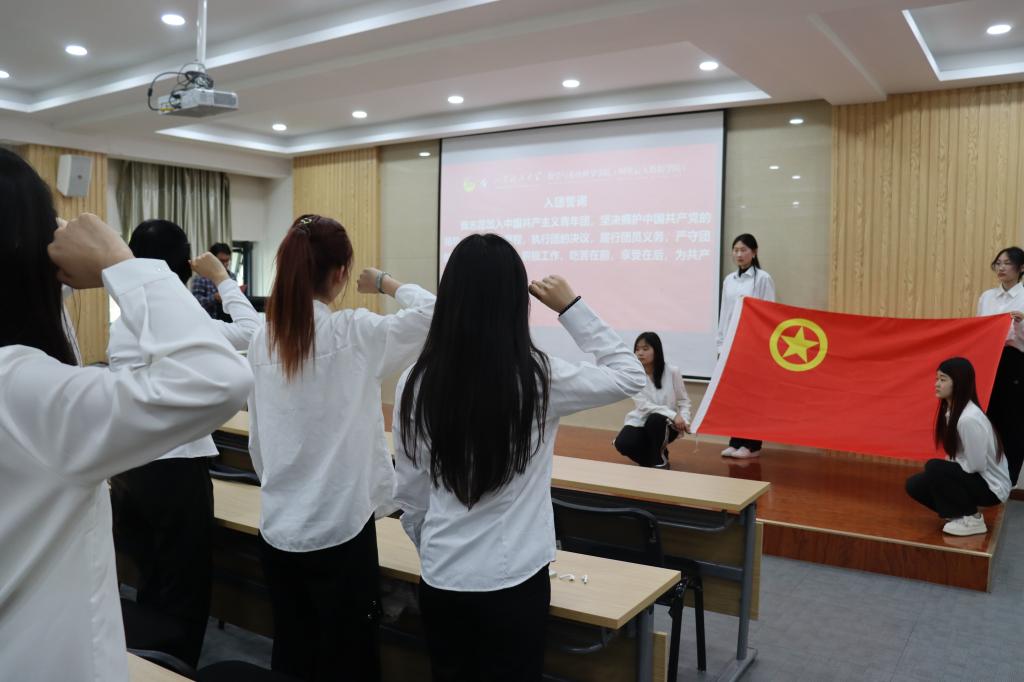 团委书记谢菲菲,团委老师葛天晨、贾梓霆,新发展团员以及优秀团员代表参加入团仪式。仪式由贾梓霆主持。