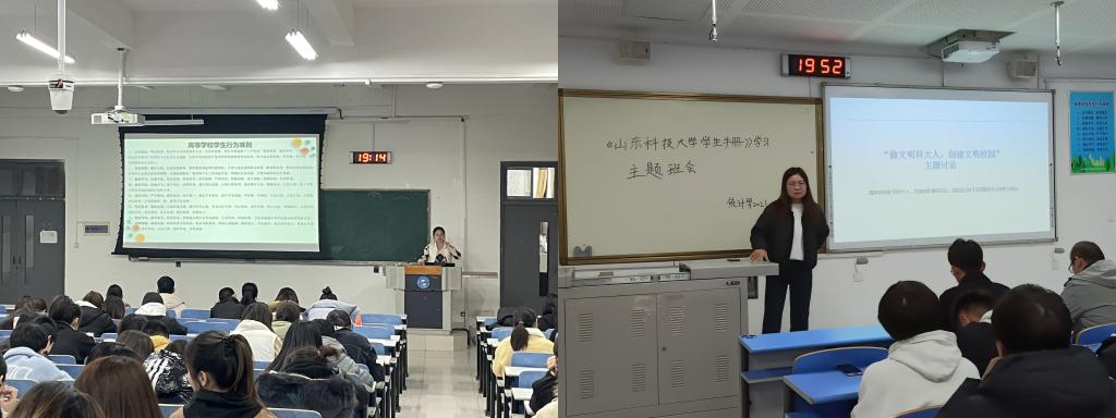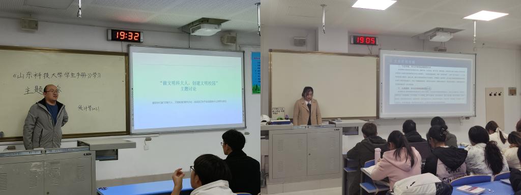 主题班会上,老师们带领学生共同学习了文明校园创建知识、《高等学校学生行为准则》、《学生手册》、《研究生手册》等内容,引导学生自觉践行社会主义核心价值观,积极主动参与到文明校园的创建活动中,以实际行动争当文明校园创建的主人翁、排头兵、践行者和监督员。