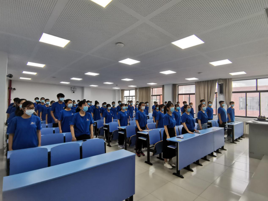 伴随着大屏幕中庄严嘹亮的国歌响起,新濠博亚娱乐 师生们肃穆起立
