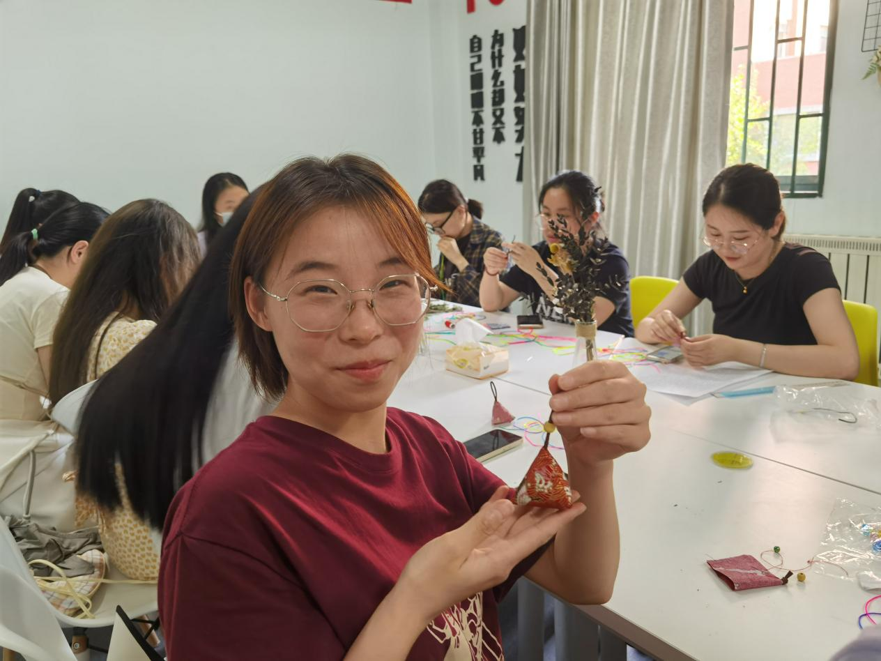 “今天的活动特别热闹,师生们欢聚一起,穿针引线、边学边做,满满的成就感。同时,也让我们更加深刻地认识到了端午节的意义,作为新时代大学生,我们要坚定文化自信,不能只挂在口头上,更要落实到行动上。”2021级数学与应用数学专业学生耿嘉蕾说道。