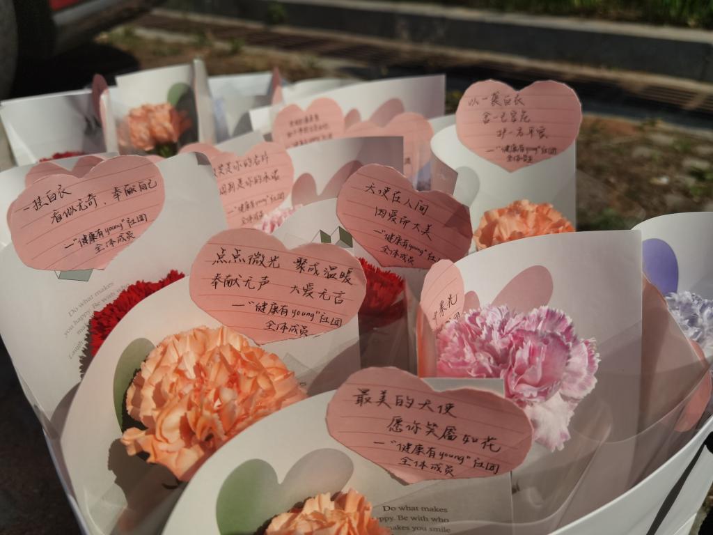 “点点微光,聚成温暖,奉献无声,大爱无言”“你的微笑是最真诚的关怀,你的问候是最温暖的呵护,你的叮嘱是最贴心的问候,祝您节日快乐”,伴着温暖的春风,新濠博亚娱乐 “健康有young”社团志愿者们将手捧鲜花和祝福明信片献给了校医院护士们,为他们带来真挚的关心和节日的问候。